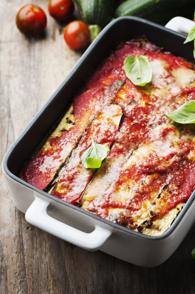 Пармиджано с цукини или запеканка из кабачков в томатном соусе с моцареллой и пармезаном. Вполне самодостаточное летнее блюдо, как и любая овощная запеканка.