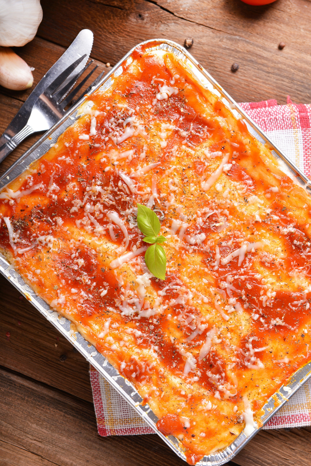 Состав: Листоавая паста, соус Болоньезе, соус Бешамель, моцарелла, пармезан, соус Неаполитана, базилик, черный перец, соль..
